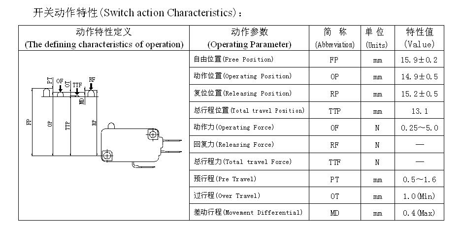 মাইক্রো সুইচ প্যারামিটার (স্পেসিফিকেশন)