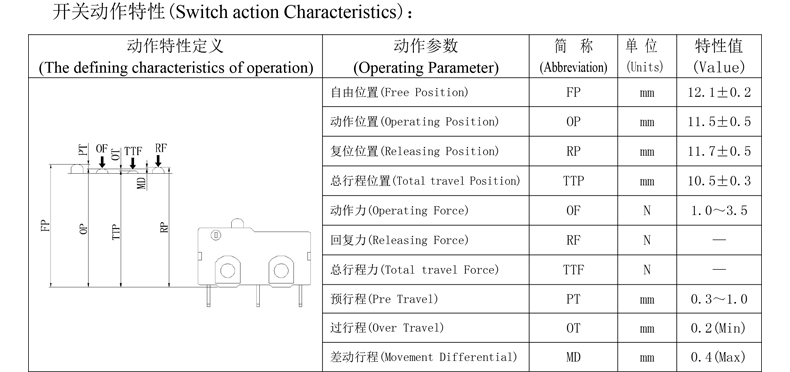মাইক্রো সুইচ স্পেসিফিকেশন