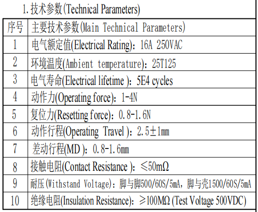 | 1 | বৈদ্যুতিক রেটিং | 16 এ 250vac | |