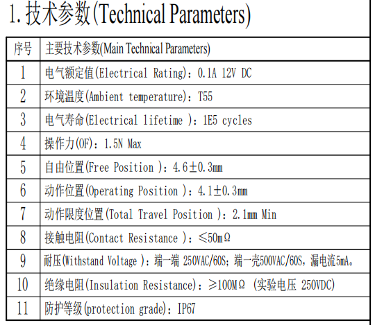 | 1 | বৈদ্যুতিক রেটিং | 0.1A 12VDC | |