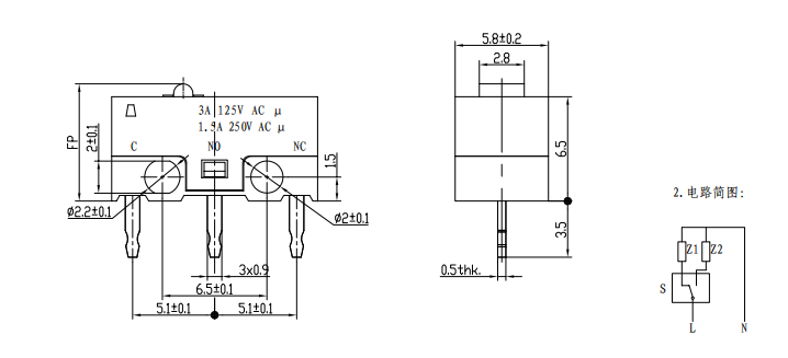 | 1 | বৈদ্যুতিক রেটিং: 1A/3A 250VAC |